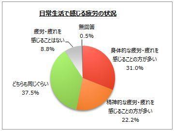 慢性的に疲れを感じている人は7割。精神的な疲労を感じている人は6割弱