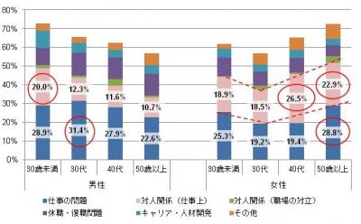男性は30歳未満、女性は40代以降で人間関係の悩みが多い