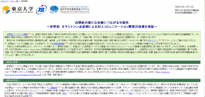 【世界初】人間関係樹立が困難な自閉性障害 オキシトシン投与で症状改善