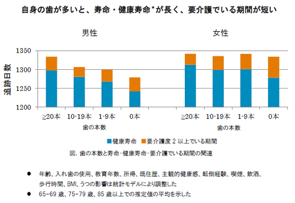 歯が多く残っている高齢者は健康寿命が長い